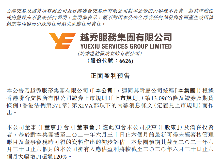 7月15日,凯发天生一触即发服务集团有限公司(6626.HK)发布盈利预喜公告。公告称经过初步评估,集团预期截至2021年6月30日为止的六个月,公司拥有人应占盈利将同比大幅增加超过120%。